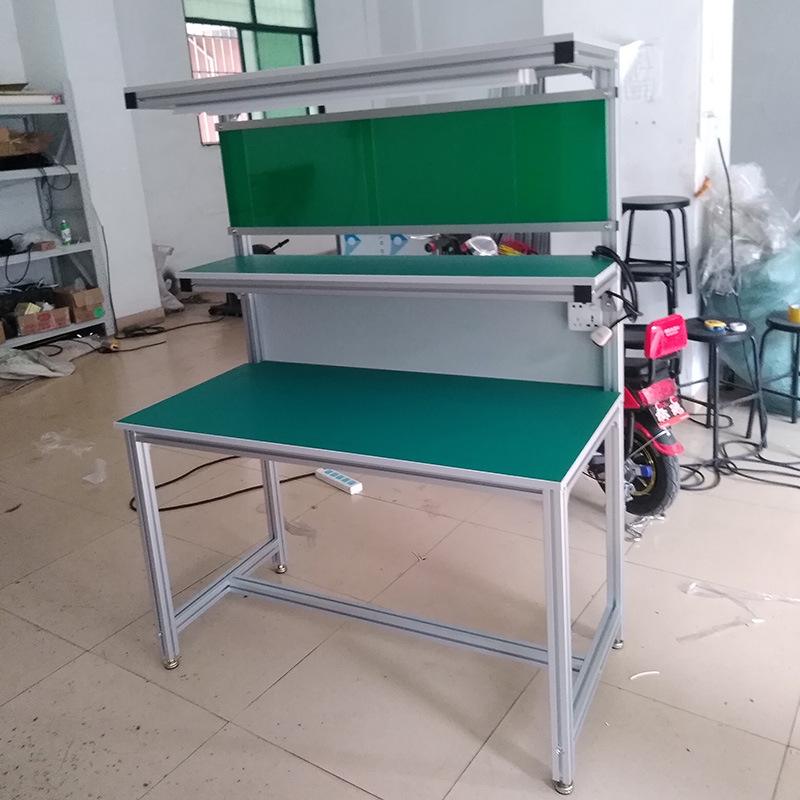 单边组装操作工作台产品由南京博萃自动化设备有限公司专业设计制造,框架有钢材结构(表面酸洗磷化喷塑处理)、铝材结构(原色)、柔性结构(可拆卸线棒结构)、不锈钢结构等,该系列工作台设备均可采用防静电胶皮铺置工作台面和置物台面,工作台面上可设置插座,顶端配置照明系统、工具吊轨、气管及快速插口等,还可根据客户需求增配工艺看板、抽屉、工具柜以及定制各类特殊规格等,整体设备美观、适用、环保、经济,既可单独使用,也可组合成生产线使用,方便灵活,工人在两边操作,一般每张工作台可以安排1-2名工人操作,长度一般在2m-2.4m之间,宽度0.8-1.2m之间较多,专业品质、诚信服务,一年内免费维护、终身跟踪服务,欢迎垂询!惠顾!合作!